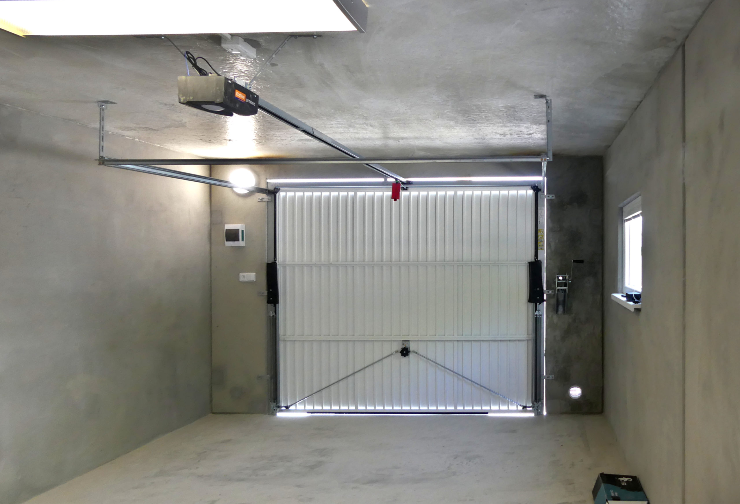 Vybavení: Výklopná vrata ručně ovládaná, boční vstupní dveře, okno